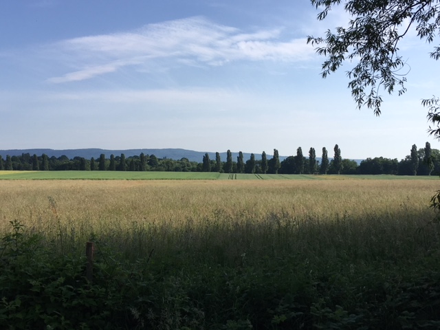 Gleich am frühen Morgen bin ich losgelaufen, von der Haustür weg. Ohne irgendein Ziel als nur das, die Stille zu erleben, die Dir bewusst wird, wenn Du das vertraute Knirschen wahrnimmst, das leise Trappeln auf dem Waldboden, das Schleifen unter den Asphaltwegen, auf denen der Schritt in Wanderschuhen irgendwie unkoordiniert wird und immer wieder stockt. Das Flüstern des Windes in den Baumwipfeln, das Murmeln des nahe gelegenen Baches und das Streichen der Brise über das wogende Meer aus Getreidefeldern.