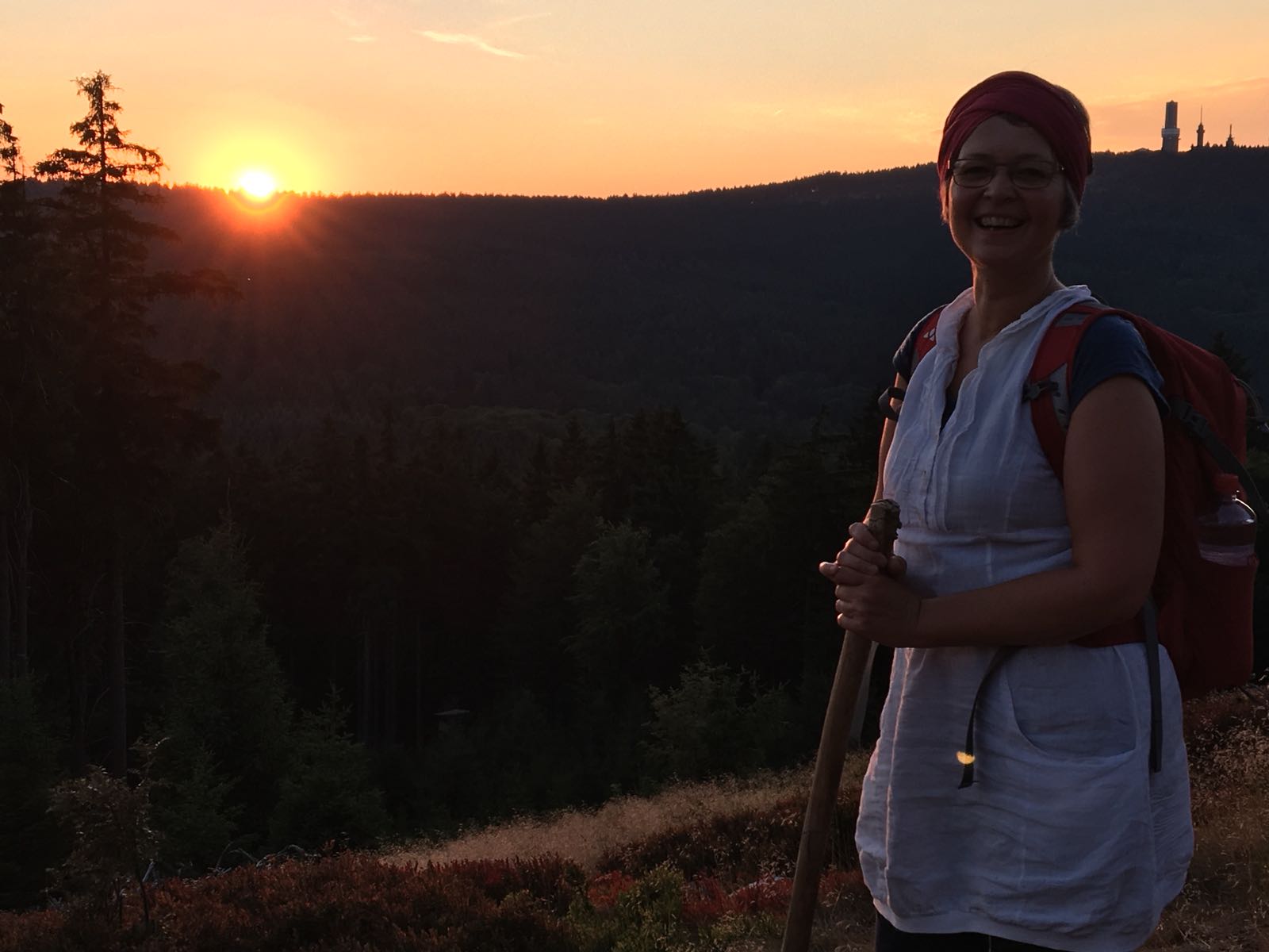 Ein paar Freunde haben sich spontan von der Idee begeistern lassen, das Spektakel von dort oben zu betrachten. Von der Großen Kurve wandern wir zum Fuchstanz und weiter auf den Altkönig und sind gerade rechtzeitig zum Sonnenuntergang oben. Während wir auf dem Weg nach oben noch glauben, dass wir wahrscheinlich die einzigen sind, stellt sich dann heraus: Wir sind längst nicht die einzigen, aber wohl so ziemlich die letzten, die den Weg auf den Altkönig gefunden haben.