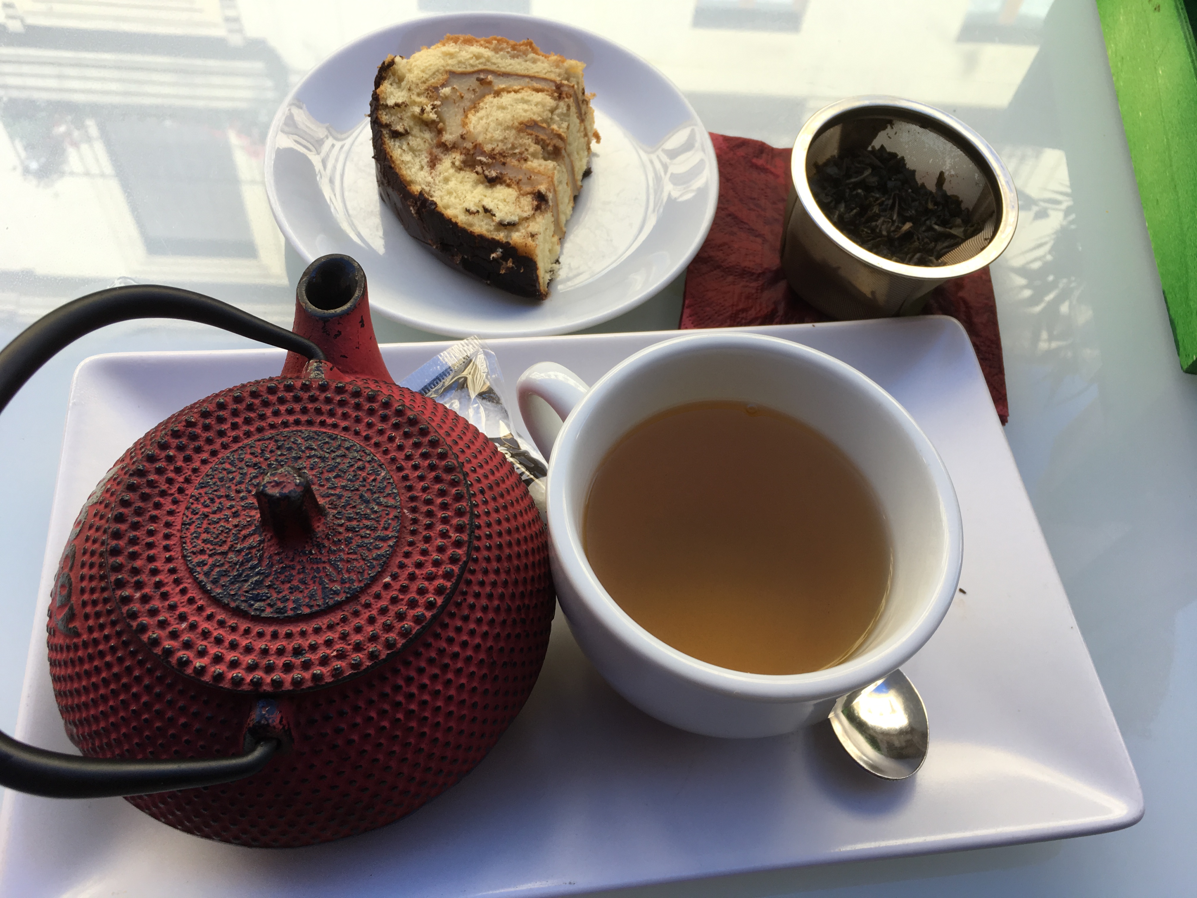 Im Gastraum steht in einer Ecke ein Tisch mit Geschirr und anderen Dingen, ein handgeschriebener Zettel mit dem Wort „ Flohmarkt“ weist darauf hin, dass man die Sachen kaufen kann. Daneben steht ein langer Tisch ohne Stühle. Ich setze mich, nicht ohne zu fragen, an einen Tisch, von dem aus ich das ganze Lokal überblicken kann. Irgendwie hab ich das Gefühl, dass ich hier als Fremde erstmal unter besonderer Beobachtung stehe.