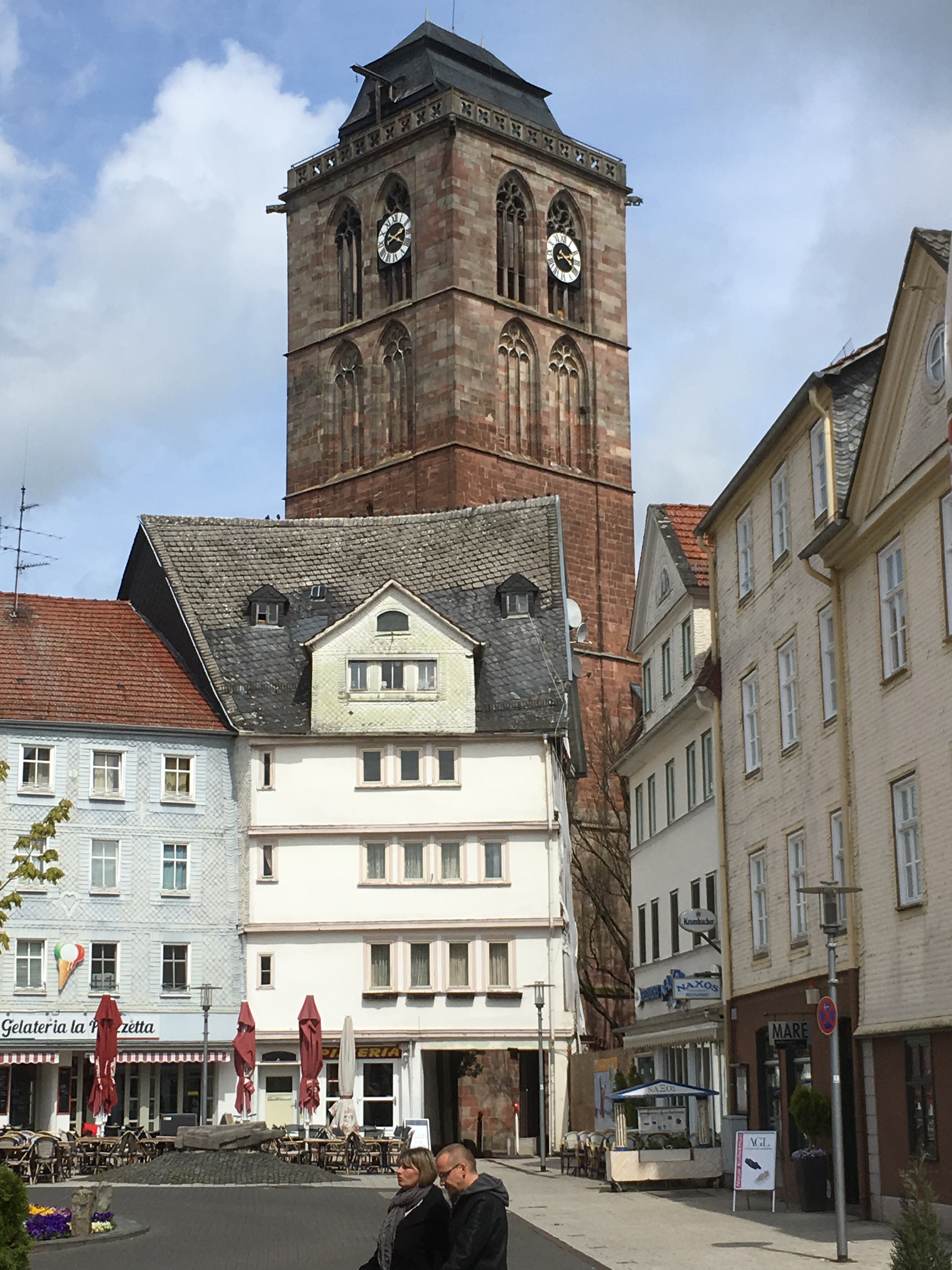Die sechs Kilometer bis Niederaula lege ich in einem Affentempo zurück. Es geht lange Zeit ziemlich nah an der Straße lang. Die Kirch in Niederaula ist wider Erwarten geöffnet. Ein schönes Kirchlein mit grünen Holzsäulen und ebenso grünen Holzbänken. Weil ich mir einen Pilgerstempel abholen will, gönne ich mir eine kleine Verschnaufpause. Poncho aus, Rucksack runter, erstmal was trinken. Und weil ich dann sowieso schon sitze, bleibe ich noch eine Weile und genieße die Stille des Kirchenraums.