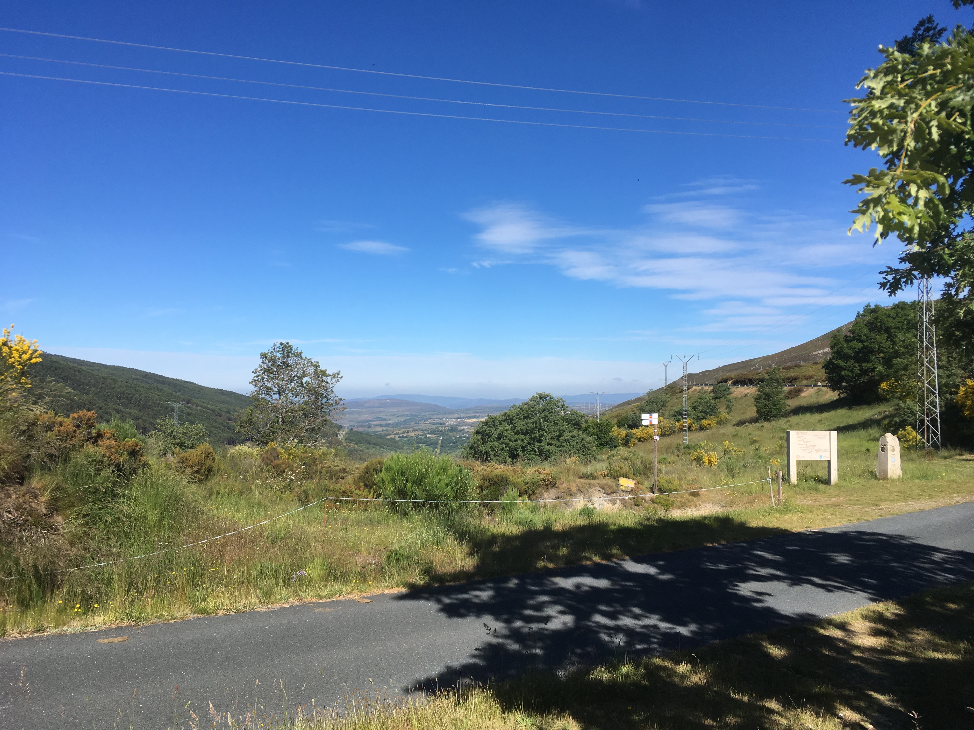 Immer wieder glaube ich mich schon fast auf dem Pass, immer wieder geht es doch noch weiter bergauf. Erst nach guten drei Stunden bin ich endlich oben und schaue in das nächste Tal. Hier betrete ich wieder Galicien und die Provinz Ourense. Als ich mich umschaue, sehe ich auf einer steinernen Bank meine Pilgerbekanntschaft Regine aus Düsseldorf sitzen. Sie ist die erste, der ich heute begegne. Später treffe ich noch einen Ungarn. Dieser Camino ist was für Leute, die die Einsamkeit suchen.