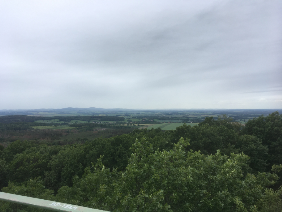 Weiter gehts über Liebstein und die Königshainer Berge mit dem Hochstein, wo wir den zittrigen Metallturm erklimmen. Oder besser gesagtt: wo ich mit zitternden Beinen den Turm erklimme und mich beherrschen muss, nicht mittendrin unter fadenscheinigen Vorwänden kehrt zu machen.