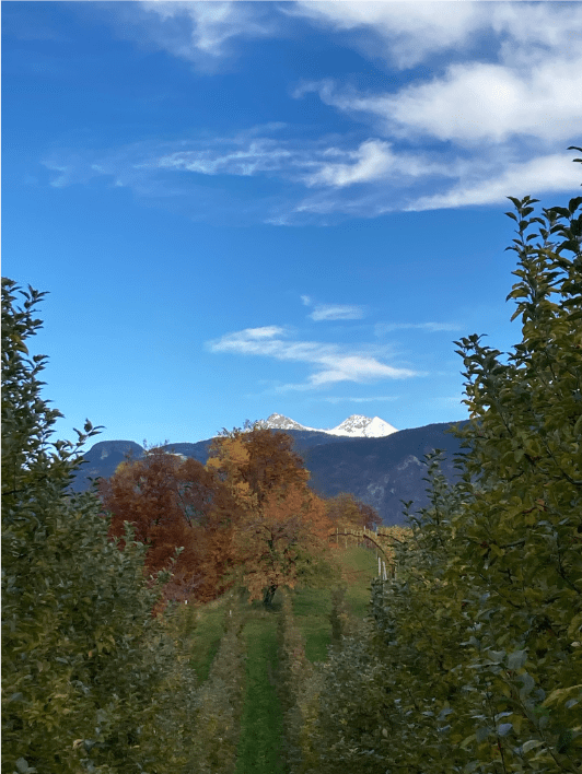 Der Einfachheit halber entschieden wir uns für die zehnte Etappe von Andrian nach Lana. Andrian liegt im Etschtal genau gegenüber von Terlan, wo wir unser Quartier in einer zwischen Weinreben und Obstplantagen gelegenen Ferienwohnung mit Blick aufs Tal hatten. Ob wir bei den hiesigen Steigungen die einundzwanzig Kilometer schafen würden, überließen wir erst einmal der Vorsehung. Soll heißen: Wir haben es nicht drauf angelegt, zumal um diese Jahreszeit, im November, die Tage äußerst kurz sind. Um fünf Uhr Nachmittag wird es dunkel, und wir sind erst um zehn Uhr los.