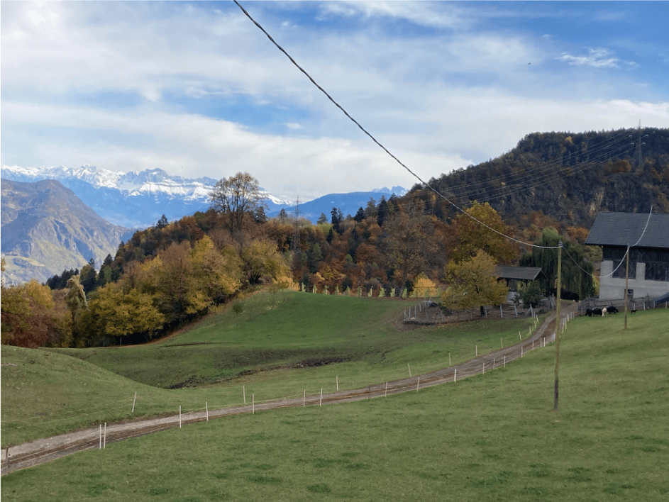 Den Waldweg von Grissian nach Prissian ließen wir deshalb aus und folgten schnurstracks der Straße. Von oben sah man auch das recht nah gelegene Tisens. Bis dorthin wären wir wohl noch vor Einbruch der Dunkelheit gekommen, doch es ging uns an dem Tag nicht um Vollständigkeit. Wir kehrten lieber ein und wärmten uns am Ofen einer Gaststätte bei einer Tasse Kaffee, bevor der Bus nach Nals mit Anschluss nach Terlan uns in der Dunkelheit aufsammelte.