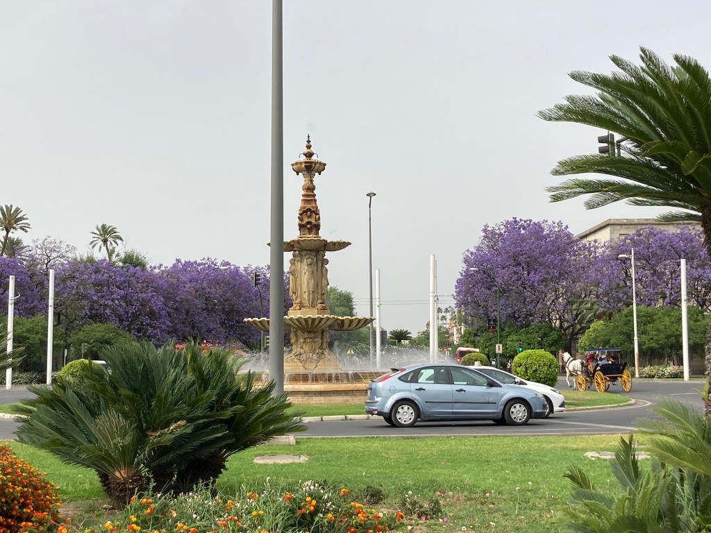 Ich erreichte Sevilla mit zwei Stunden Verspätung. Die Stadt war mir zu laut. Erst als ich um den Alcázar Real herumgegangen war und ein wenig durch das Viertel Santa Cruz geschnuppert hatte, um dann in die zauberhaften Jardines de Murillo abzubieten, wurde es auch in mir ein wenig stiller. Ich betrat den Park an der Ecke, an der sich der Balkon von Rosina befindet, der angeblich Rossini zur Oper „Der Barbier vo Sevilla“ inspiriert hat. Hier sangen die Vögel um die Wette, das laute Feiern und der motorenlärm verschwanden hinter einer grünen Wand.