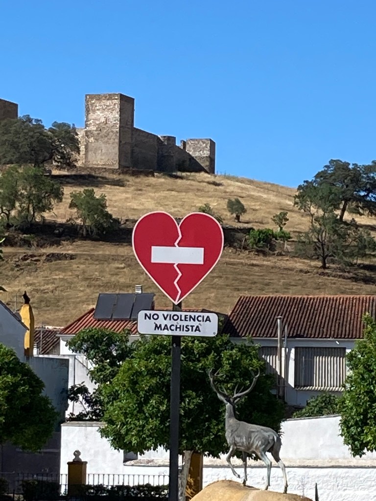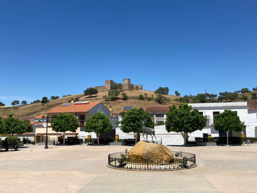 Von oben hat man einen sehr schönen Rundblick über das Land und kann in der Ferne das Castillo de las Torres an der Grenze zur Extremadura erkennen. Morgen werde ich also Andalusien verlassen. Es ist still, der Blick kann schweifen und die Erkenntnis, dass ich trotz aller Mühen doch vorwärts komme, lässt mein aufgewühltes Gemüt zur Ruhe kommen.