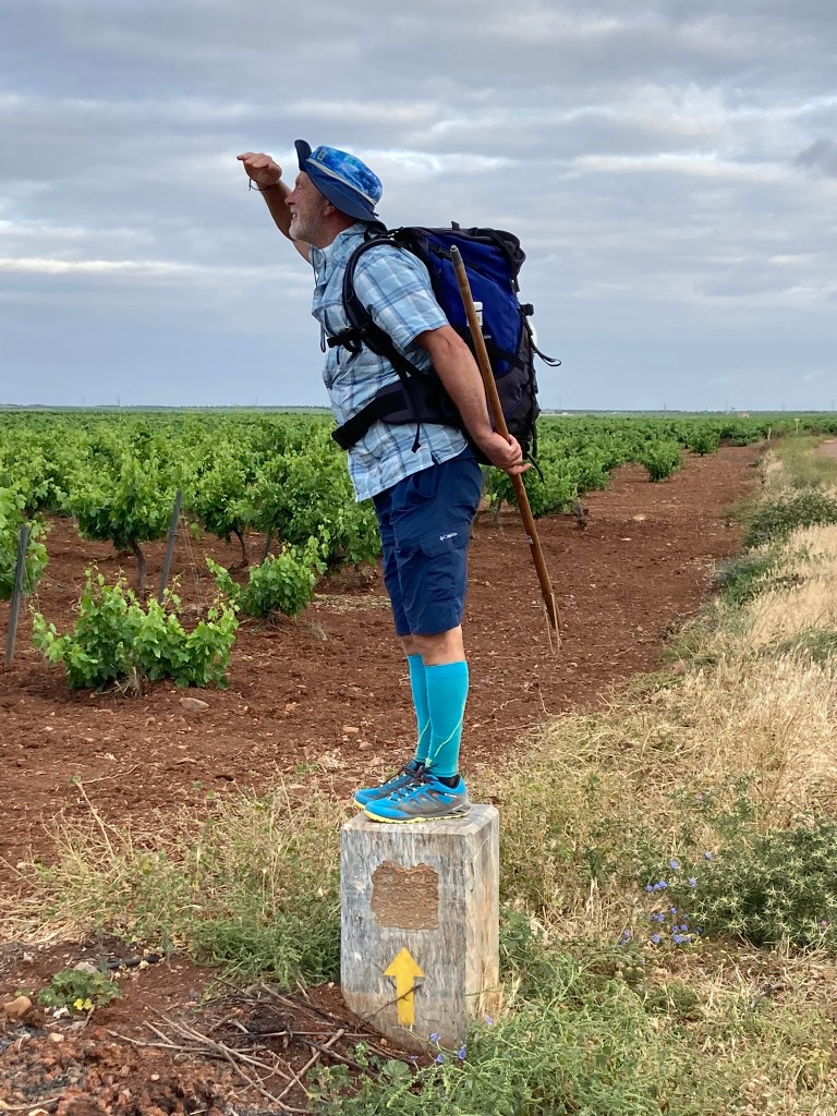 Die flache Piste der heutigen Etappe erstreckt sich entlang der alten Römerstraße, die auf vierzehn Kilometern schnurgeradeaus das Weinbaugebiet durchschneidet. Es gibt ja den Spruch, in Ostfriesland sehe man morgens schon, wer einen am Abend besuchen käme. Hier auf der Strecke siehst du, mit wem du am Abend den Schlafsaal teilen wirst. Viele Pilger sind es nicht. Aber genügend, um sich nicht völlig verloren zu fühlen. Heute sehe ich den ganzen Tag über einen einzigen. Aber das reicht ja schon.