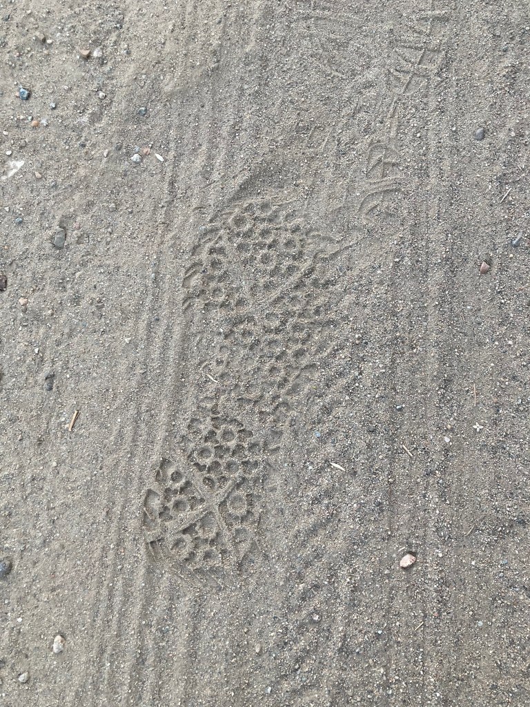 Die Fußabdrücke sind nämlich auch ein verlässlicher Hinweis darauf, dass man noch auf dem richtigen Weg ist. Das jedenfalls glaube ich zu diesem Zeitpunkt noch. Und werde gegen Ende dieser Etappe eines besseren belehrt. Und das kommt so: