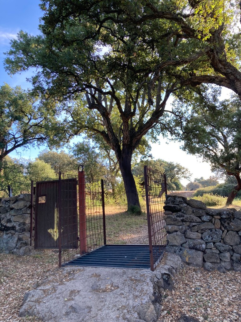 Der Weg führt durch die wunderschöne Dehesa-Landschaft. Ich hätte die Weidetore zählen sollen, die ich an diesem Tag passiert habe. Es mögen so zwischen fünfzehn und zwanzig gewesen sein.