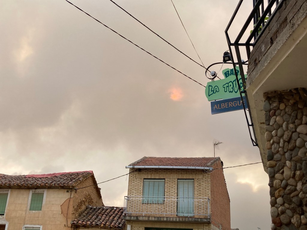 Am Abend ziehen beißende Rauchschwaden des Großfeuers über den Ort hinweg, das derzeit in der Sierra de Culebra wütet. Von Alvaro erfahre ich, dass bereits 11.000 ha verbrannt sind. Die Wetterverhältnisse sind ungünstig. Es weht ein kräftiger Wind. Und der erste Aschestaub landet auf unserem Tisch. Keine guten Aussichten.
