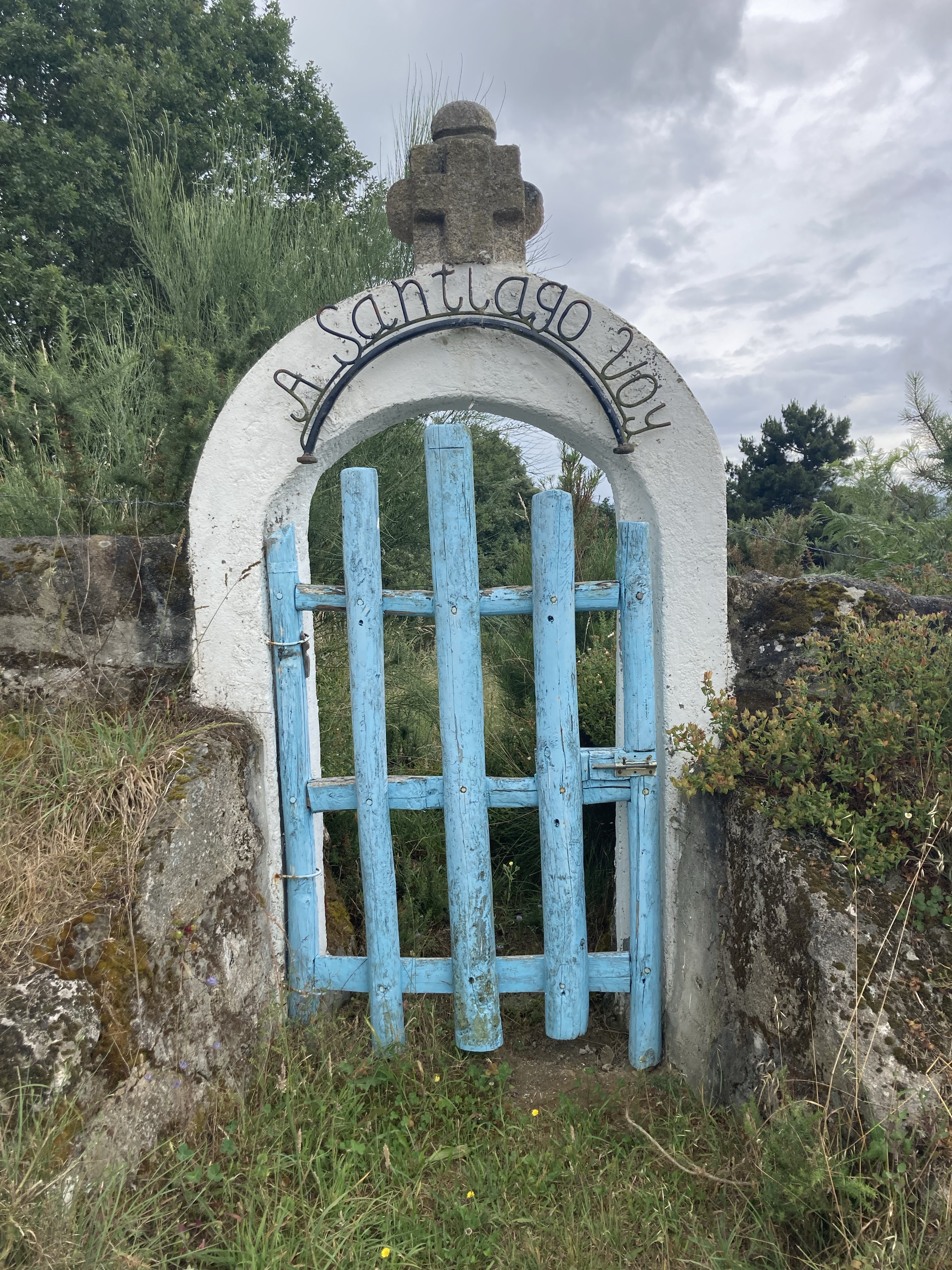 Wohin des Wegs? – A Santiago Voy. Natürlich. Nach Santiago gehen wir. Der Weg spiegelt es immer wieder, hier in Galizien noch sehr viel mehr als je zuvor. An den Häusern längs des Weges zeigt sich kreativ, wie sehr die Anwohner ihren Camino leben und lieben. Pfeile, Pilgerfiguren aus Draht, Muschelzeichen, eine ganze Bar und Herberge voller Muscheln, die sich eines jeden erinnern, der hier vorübergezogen ist. So habe auch ich eine Muschel in Albergueía hängen. Wer weiß wie lange noch? – Nun ja, wer weiß wie lange sich der Weg sich meiner erinnern wird. Manchmal glaube ich, meine Fußabdrücke werden für immer in den staubigen Pisten haften, festgetreten von Tausenden oder Millionen Fußpaaren, die auf meine Schritte folgen, morgen, übermorgen und so weiter. So war es und so wird es immer sein.