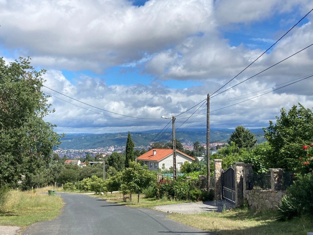 Ein Highlight landschaftlicher Schönheit ist die Strecke heute ohnehin nicht. Die nahe Stadt kündigt sich durch zahlreiche kleine Siedlungen an, die sich beinahe nahtlos aneinanderreihen. Der Himmel ist trübe und düster, am Vormittag zumindest. Erst als ich mir nach zweieinhalb Stunden eine Pause bei einem Café con Leche gegönnt habe, hebt sich meine Stimmung. Verstärkt wird dies durch den spontanen Segenswunsch seitens einer Frau, die gerade in ihrem Garten herumwerkelt. Meine Mundwinkel schieben sich augenblicklich nach oben.