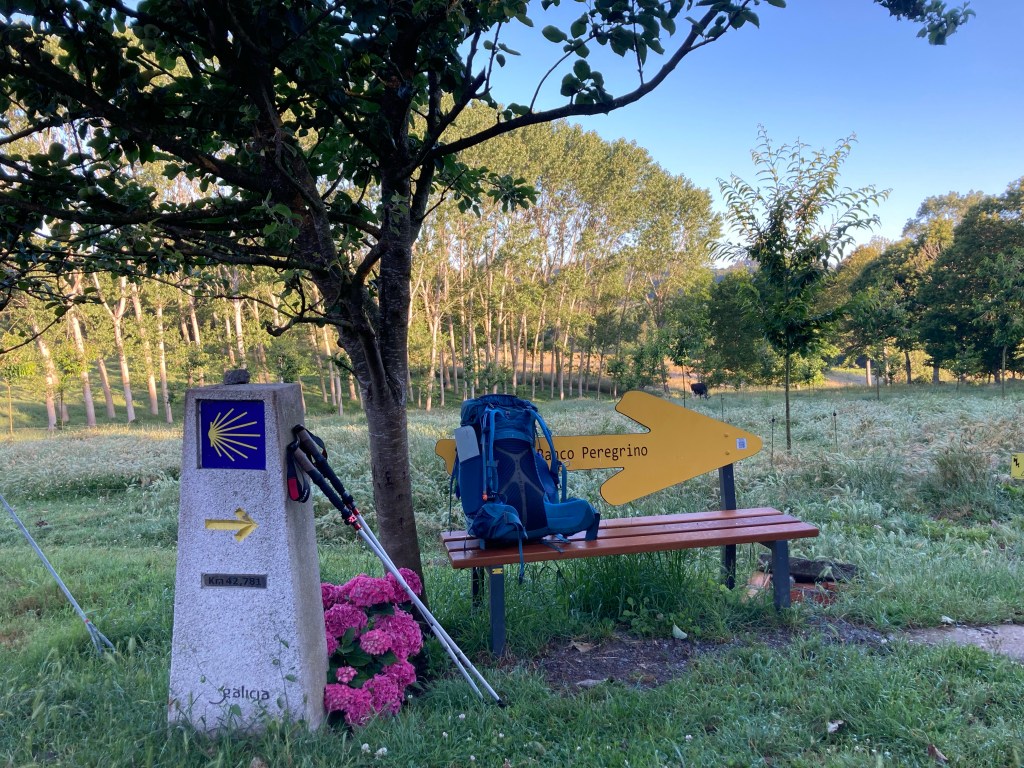 Einträchtig auf der Bank sitzend, lassen wir die vergangenen siebenunddreißig Tage Revue passieren. Allmählich mischt sich unter die Freude der baldigen Ankunft auch Trauer. In zwei Tagen werden wir uns trennen. Ich kann gar nicht sagen, dass wir uns besonders gut kennengelernt hätten auf diesem Weg. Jeder hing ja tagsüber seinen eigenen Gedanken nach. Und ich weiß genauso wenig, was Gorazd in seinem Camino-Gepäck hat, wie er eine Ahnung hat, was mich die ganze Zeit über umtreibt. Wir haben uns über vieles unterhalten, aber nie darüber, was uns wirklich auf den Weg gebracht hat.