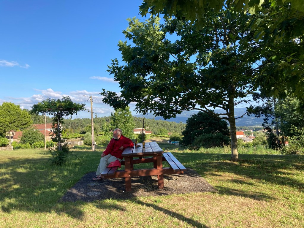 Kurz vor Dornelas übernimmt Gorazd die Führung. Er ist nach dem Einlaufen immer sehr viel schneller unterwegs als ich mit meinem halblahmen linken Fußzeh. Wir freuen uns beide auf eine weitere Einkehr dort. Leider wird unsere Hoffnung enttäuscht. Die dortige Herberge, in der es einen Kaffee hätte geben können, hat leider wegen Renovierungsarbeiten geschlossen. Also weiter. Wir sind nach gut fünfeinhalb Stunden Fußweg beide richtig hungrig und wünschen uns auch mal eine längere Sitzpause.
