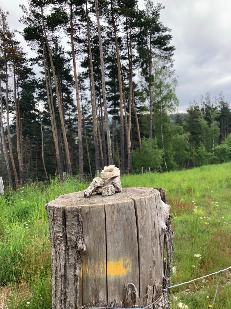Morgen sind keine großen Höhenunterschiede zu erwarten. Der Weg führt über das Hochplateau des Aubrac, auf weitem Weideland. Ich freue mich auf weite Aussichten.