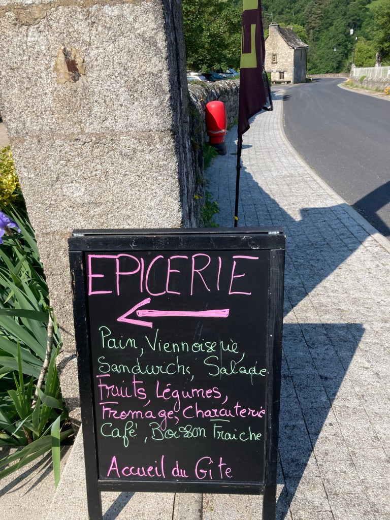 Das Abendessen bei François ist nicht ganz so üppig und gut wie es der Preis für die auf dem französischen Pilgerweg übliche Halbpension (Demi Pension) vermuten lässt. Es gibt Wurstteller, Kartoffelauflauf mit Wurst und Mousse au Chocolat, alles ein bisschen abgezählt. Das Frühstück besteht aus getoastetem Brot mit Marmelade und Kaffee mit kalter Milch. Mit neunundvierzig Euro ist die Übernachtung im Mehrbettzimmer für mich eine der teuersten auf der Via Podiensis. Aber wer würde da meckern angesichts der heimischen Preise? Ich halte es mit dem Spruch: „Der Tourist verlangt, der Pilger dankt“.