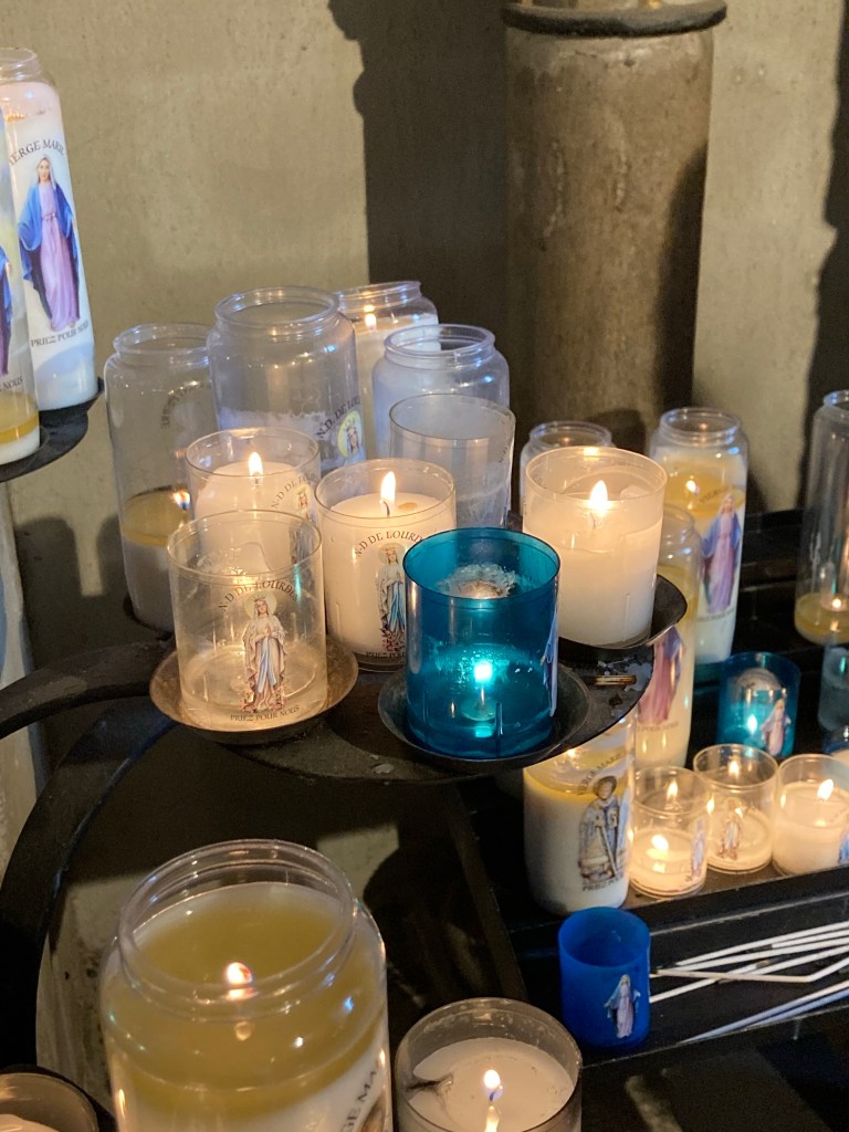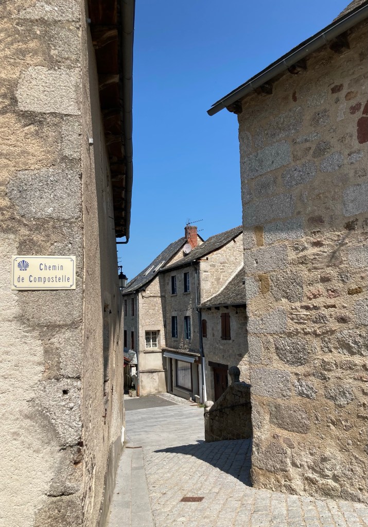 Dann mache ich mich auf die Herbergssuche, komme allerdings nicht weit, weil ich direkt Axelle und Bertrand in die Arme laufe, mit den beiden hatte ich ein Zimmer in Espalion geteilt. Wir setzen uns nochmal auf ein Getränk. Das sehr gläubige, aber nicht dogmatische Pilgerpaar wird die Nacht in der Abtei bei den Möchen verbringen und auch zur Abendmesse gehen. Mir scheint, dass in Frankreich sehr viel mehr Menschen aus religiösen Motiven pilgern als in Spanien. Aber ich kann mich auch täuschen.