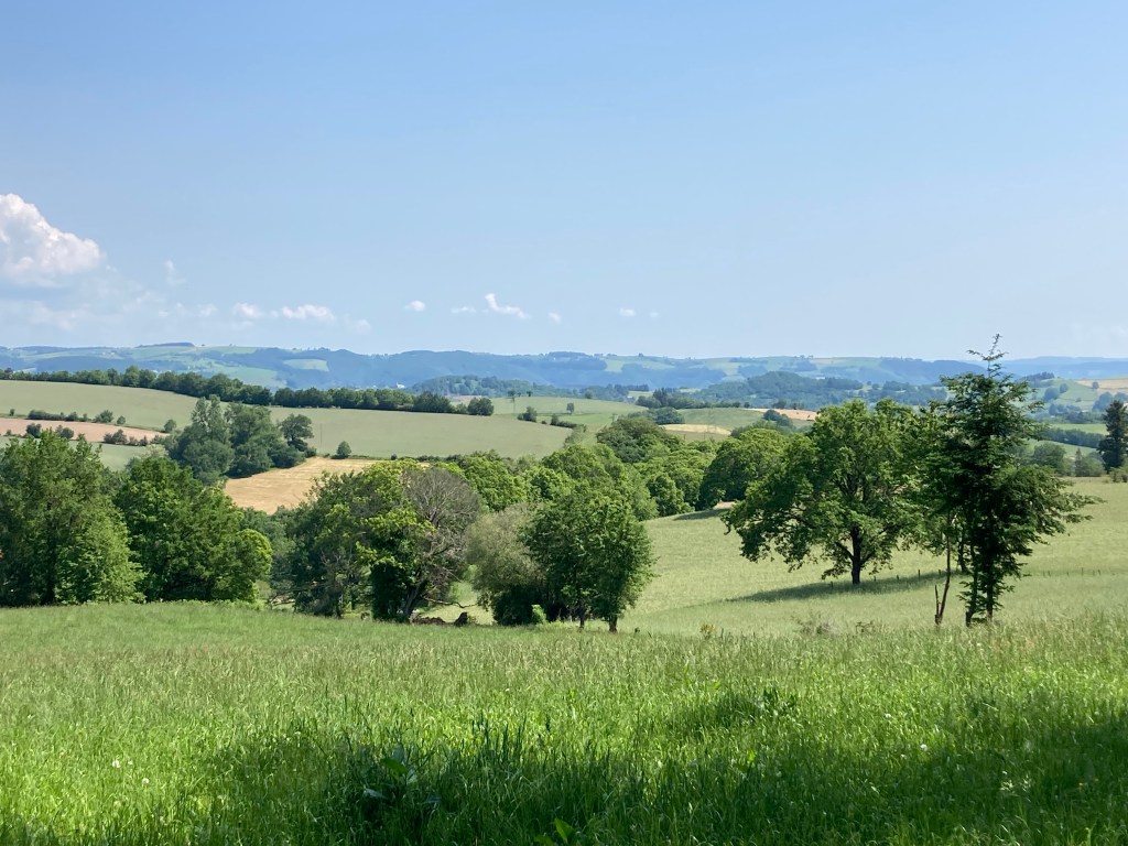 Ich bin immer wieder erstaunt, wie ein solch kleiner Vorfall mich aus dem Hier und Jetzt des Pilgerinnendaseins herauskatapultiert und ärgere mich am meisten über mich selber. Und grüble weiter darüber nach, wo ich wohl frühestens einen geöffneten Bahnschalter antreffe. Decazeville, dachte ich zuerst. Doch der Bahnhof ist vier Kilometer von meiner Route entfernt. Acht Kilometer Umweg will ich nicht auf mich nehmen. In Decazeville bleiben kommt auch nicht in Frage. Wenn ich meinen französischen Pilgerfreunden glauben kann – und daran hab ich keinen Zweifel – dann ist Decazeville nicht gerade ein Ort, der zum Bleiben einlädt: Der Ort wurde wegen der Kohle- und Eisenvorkommen im 19. Jahrhundert gegründet und beherbergte Eisenhüttenindustrie und Gießereien. Ein herber Kontrast zu den mittelalterlichen Dörfchen an der Via Podiensis. – Ich werde also wohl weiter sinnlos weitergrübeln und nehme es als Chance, mich auch mit meinen nicht so geschätzten Eigenschaften anzufreunden.